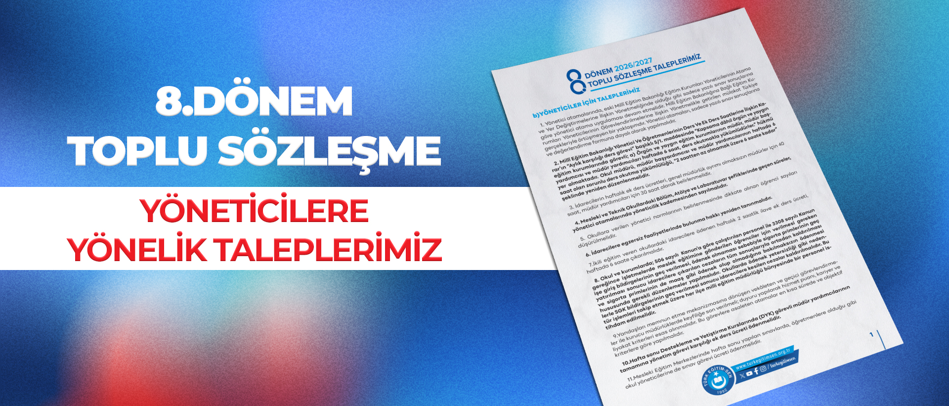 8.Dönem Toplu Sözleşme Yöneticilere Yönelik Taleplerimiz İçin Tıklayınız.
