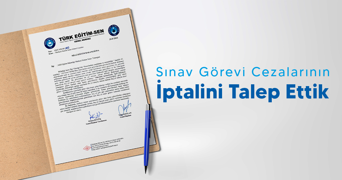 Türk Eğitim-Sen olarak; merkezi sistem sınavlarında görev alan kamu görevlilerine yönergeye aykırı hareket etmeleri durumunda verilen, beş yıl süreyle sınav görevi vermeme cezalarının geri alınarak, mağduriyetlerin giderilmesi için gerekli düzenlemelerin yapılması hususunda, MEB’e talepte bulunduk.