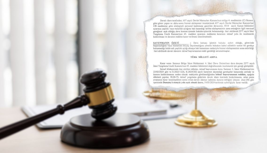 657 sayılı Devlet Memurları Kanunu’nun 4/B maddesi kapsamında çalışmakta iken, yaşlılık aylığı almaya hak kazanması nedeniyle hizmet sözleşmesinin sona erdirilmesine ilişkin işlemin iptali ile bu işlem sebebiyle yoksun kalınan parasal hakların yasal faizi ile birlikte tahsili talebiyle açtığımız davada, Samsun 3. İdare Mahkemesi’nin 2023/1226 E., 2024/202 K. sayılı ve 23.02.2024 tarihli kararı ile“..7438 sayılı Sosyal Sigortalar ve Genel Sağlık Sigortası Kanunu ile 375 Sayılı Kanun Hükmünde Kararnamede Değişiklik Yapılmasına Dair Kanunun 1. maddesi ile 5510 sayılı Sosyal Sigortalar ve Genel Sağlık Sigortası Kanununa eklenen geçici 95. madde ile tanınan erken emeklilik hakkının tercihe bağlı istisnai bir hak olarak sonradan yapılan söz konusu düzenleme ile getirildiği, bu emeklilik hakkından yaş koşulu dışındaki diğer koşulların sağlanması halinde ancak talep edilmesi üzerine faydalanılabileceği, bu yönde bir talepte bulunmayanların ise resen emekli edilmelerinin mümkün olmadığı, sözleşmeli personel pozisyonuna atananların o anki koşullara göre emekliliğe hak kazanacakları tarihi esas almak suretiyle çalışma sürelerini planladıkları, davacının da bu kapsamda haklı bir beklentisinin oluştuğu, bu itibarla erken emeklilik talebi/isteği olmayan sözleşmeli personelin aleyhe olacak şekilde sonradan yapılan düzenlemeye tabi tutulmasının hukuki belirlilik ve öngörülebilirlik ilkesine aykırı olduğu, aynı zamanda anayasal bir hak olan çalışma hakkının önüne geçilerek bu yönde bir kısıtlama getirilemeyeceği sonuç ve kanaatine varılmaktadır.” denilerek, dava konusu işlemin iptaline, tazminat isteminin kabulüne, davacının işlem nedeniyle yoksun kaldığı maddi kayıpların, her bir parasal hakkın doğduğu tarihten itibaren işleyecek yasal faiziyle birlikte davalı idare tarafından davacıya ödenmesine, karar verilmişti.